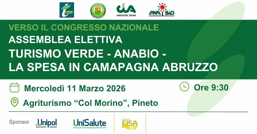 Mercoledì 11 marzo 2026, alle ore 9:30, presso l’Agriturismo “Col Morino” di Pineto, si terrà l’Assemblea Elettiva di Turismo Verde – ANABIO – La Spesa in Campagna Abruzzo.